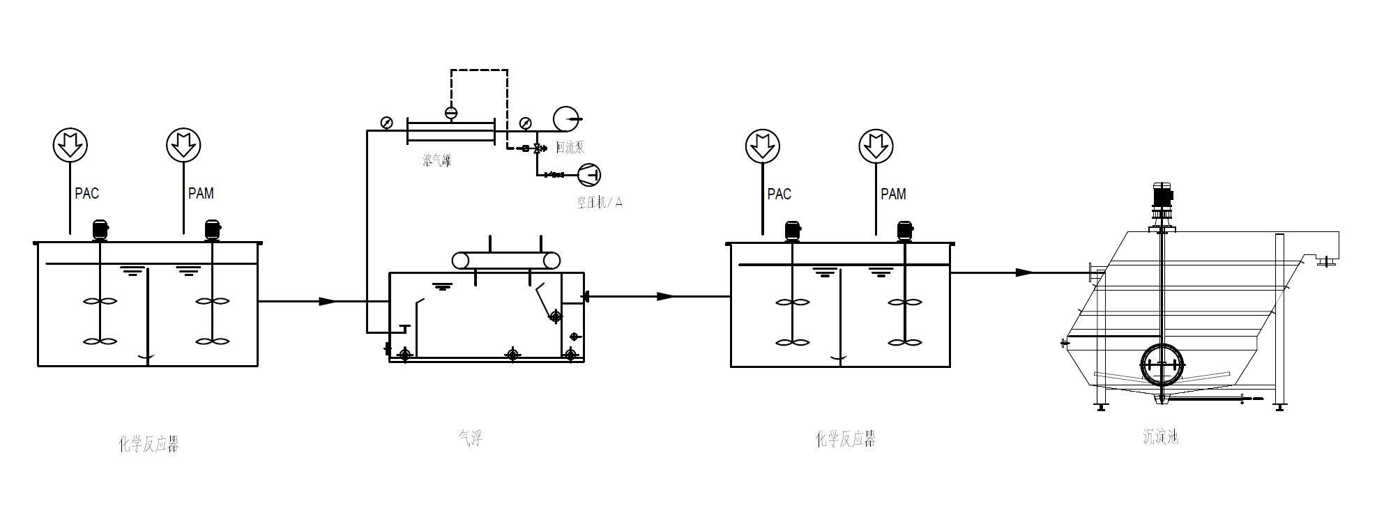 我司技术人员到现场后了解到,此工艺是气浮后出水进入沉淀池沉淀的流程,